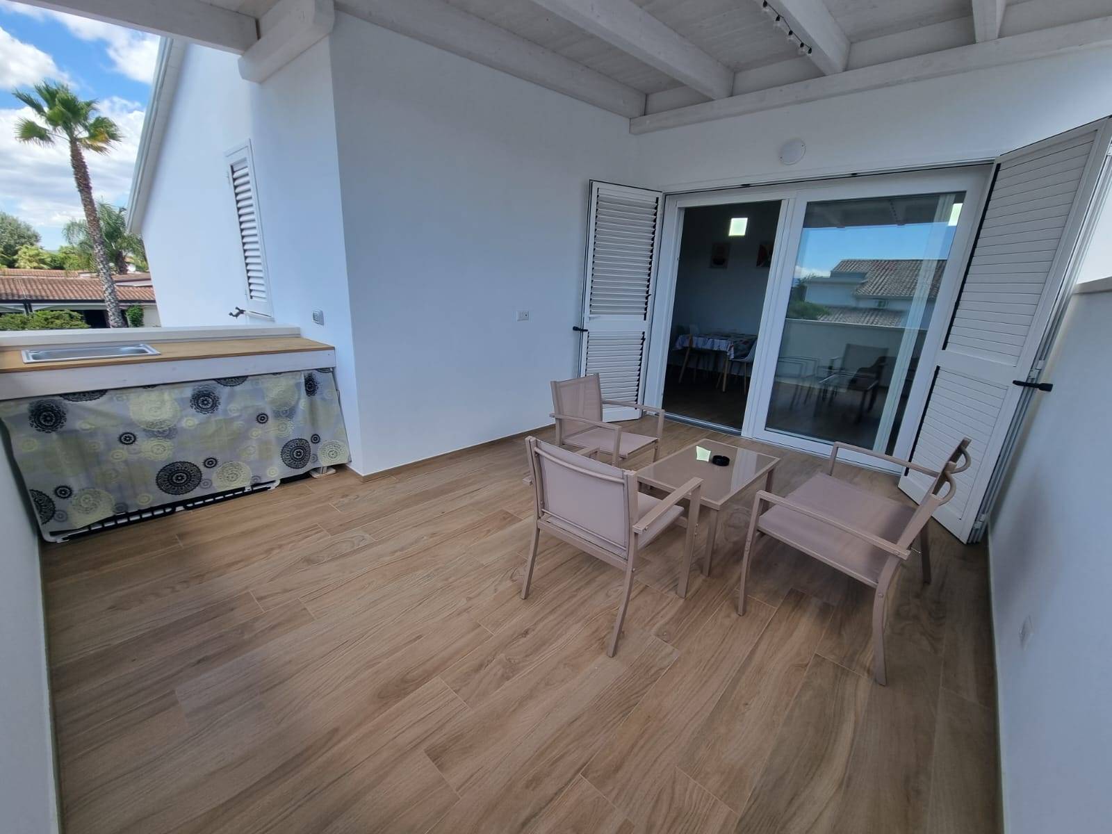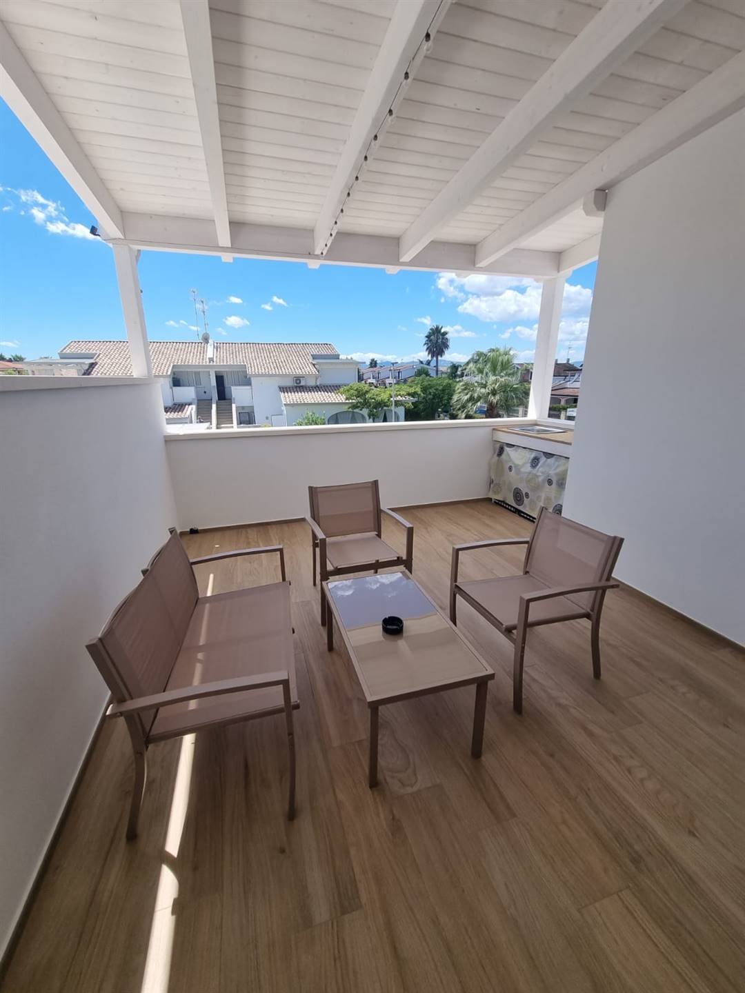 L' immobile servito da un ingresso indipendente si compone da ingresso su soggiorno con angolo cottura, 2 camere matrimoniali + divano letto, 2 bagni, di un ampio terrazzo attrezzato, lavatoio, faccia esterna e deposito.