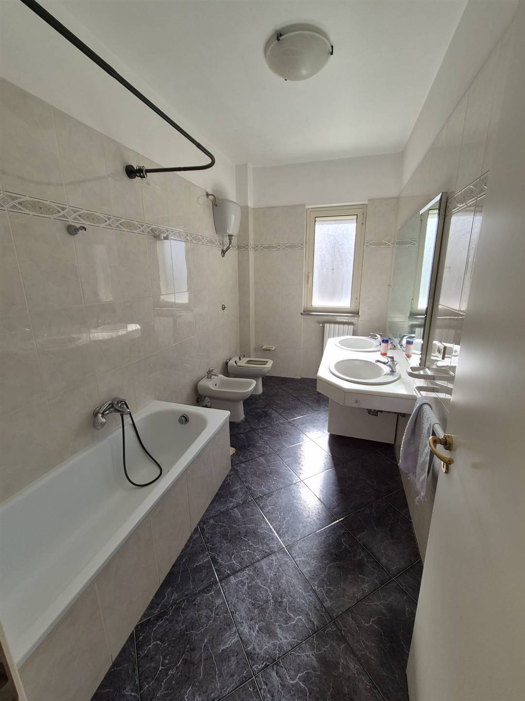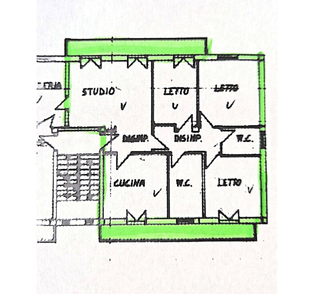 L'interno e' composto da ingresso su salone, cucina abitabile entrambi balconati, 3 comode camere da letto e due bagni di cui uno con vasca e uno con doccia.